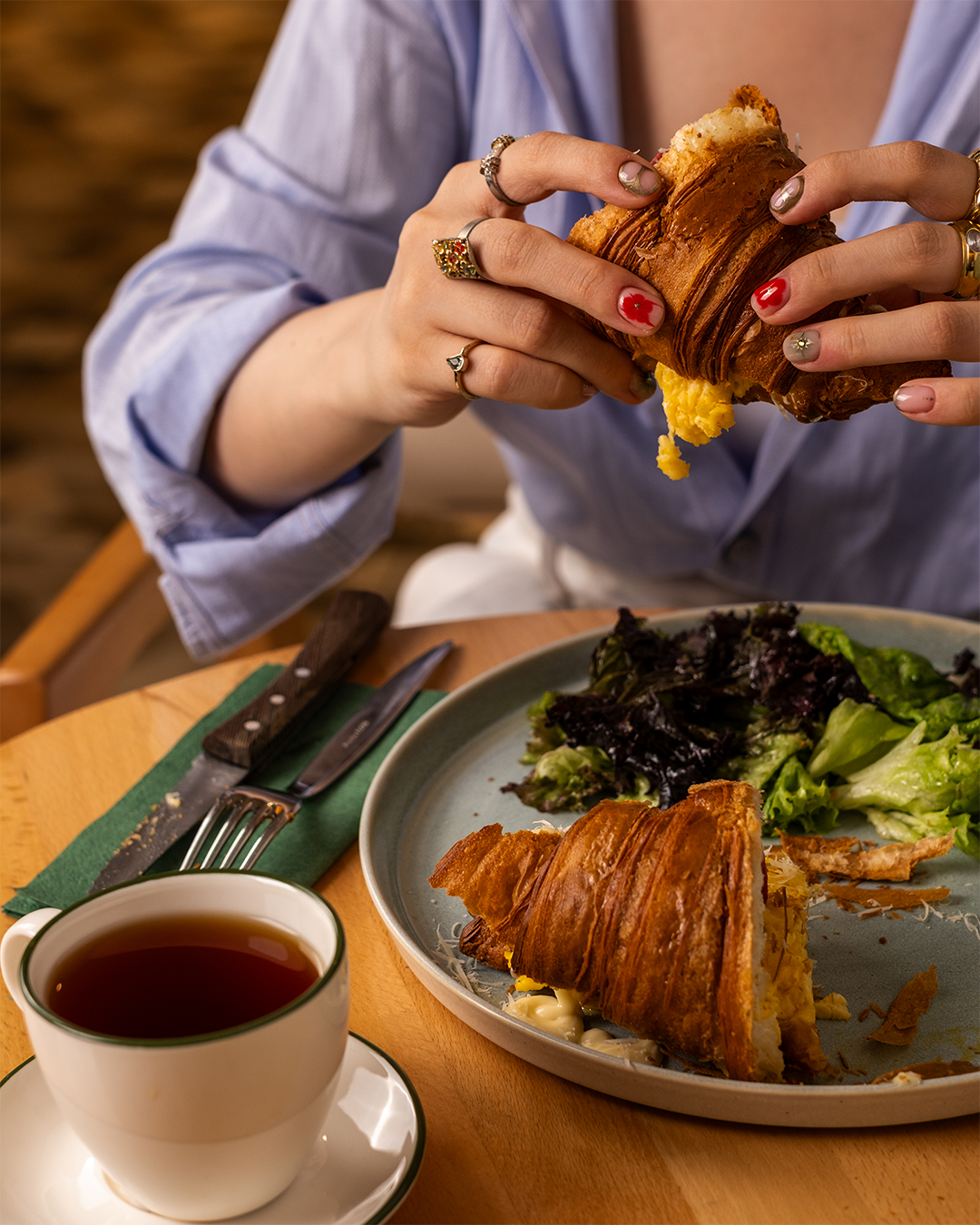 Taptaze kruvasanlar arasında kaybolabilir, bir San Sebastian’ın derinliğinde durabilir, ekmek üstü lezzetlerle hafif kaçamak yapabilirsin. Her ruh hâline uygun bir tat var Fey’de.